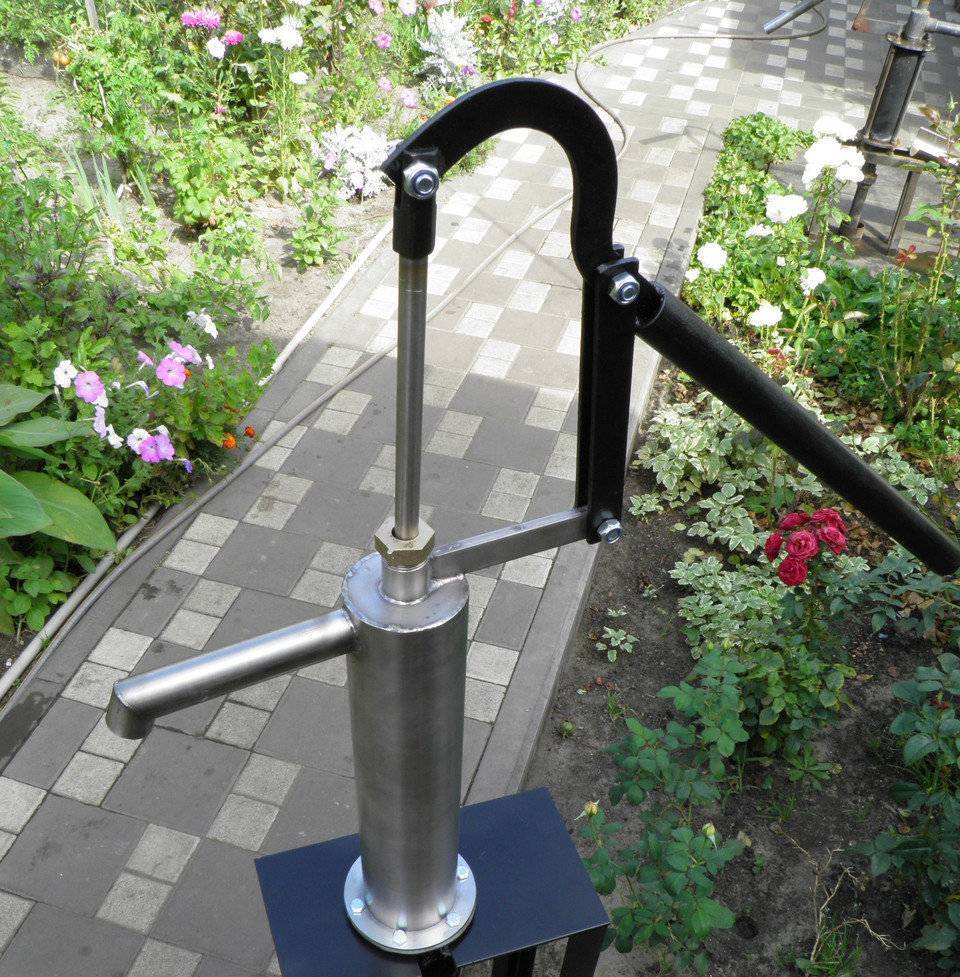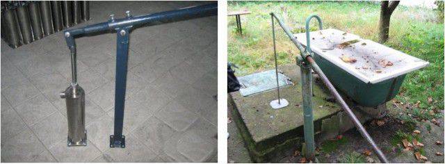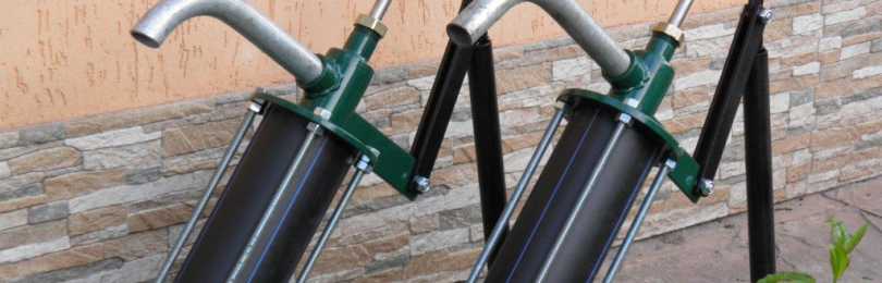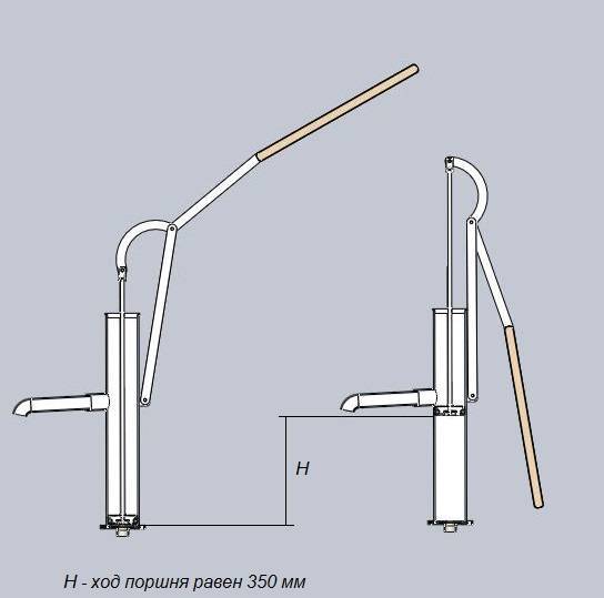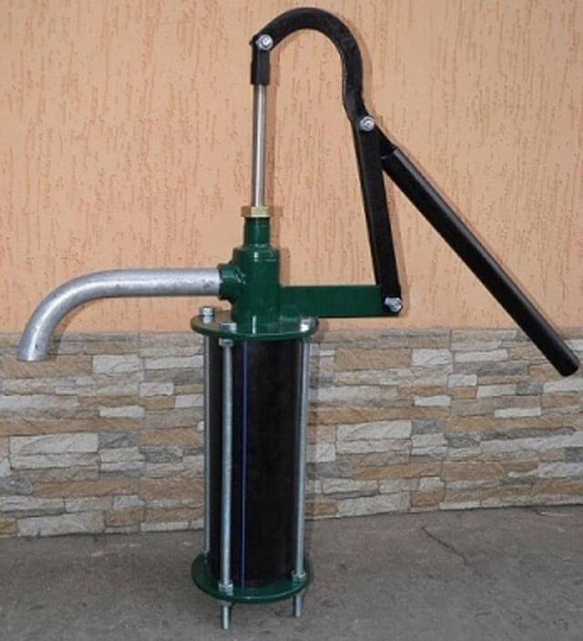 Son installation s'effectue à 1 m au-dessus du niveau du sol.Grâce à la commande mécanique du levier, la pompe à pompe manuelle met le piston en mouvement. Lors d'un déplacement dans une direction, du fluide est aspiré dans la cavité, lors d'un retour en arrière, une partie de l'eau est renvoyée. Ainsi, le pompage se produit.
