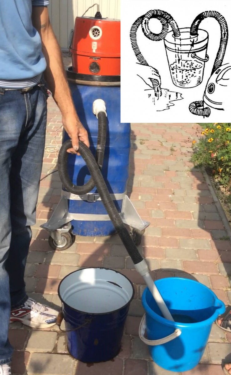 - Un seau d'un diamètre de 150 mm est fixé à la partie d'admission. L'eau entrera dans le pipeline par l'assemblage principal (réducteur de tuyau). Vous pouvez le prendre à la fois de la pompe d'usine et de la pompe d'égout.
