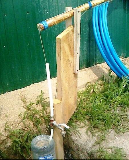 Une telle pompe artisanale pompe parfaitement l'eau à une profondeur de deux mètres. Il durera plusieurs années pour un fonctionnement fiable, compte tenu de son fonctionnement cyclique