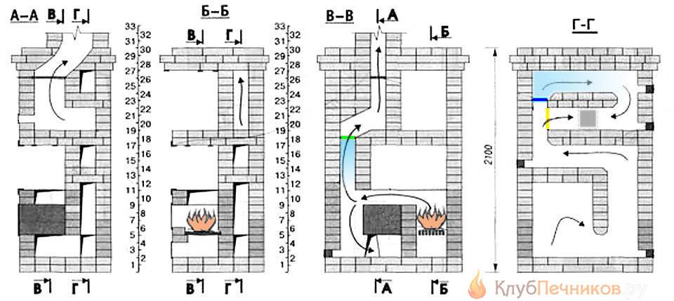- Cours séquentiel avec canaux horizontaux. La masse et les dimensions du four sont les mêmes que dans le précédent. cas, mais construire un bouclier avec des canaux horizontaux est beaucoup plus difficile. Résistance au flux de gaz env. 1,5 fois moins. En conséquence, l'efficacité thermique du four est plus élevée. Il est possible d'aménager un canapé, c'est-à-dire le canal supérieur ne devient pas très chaud ;