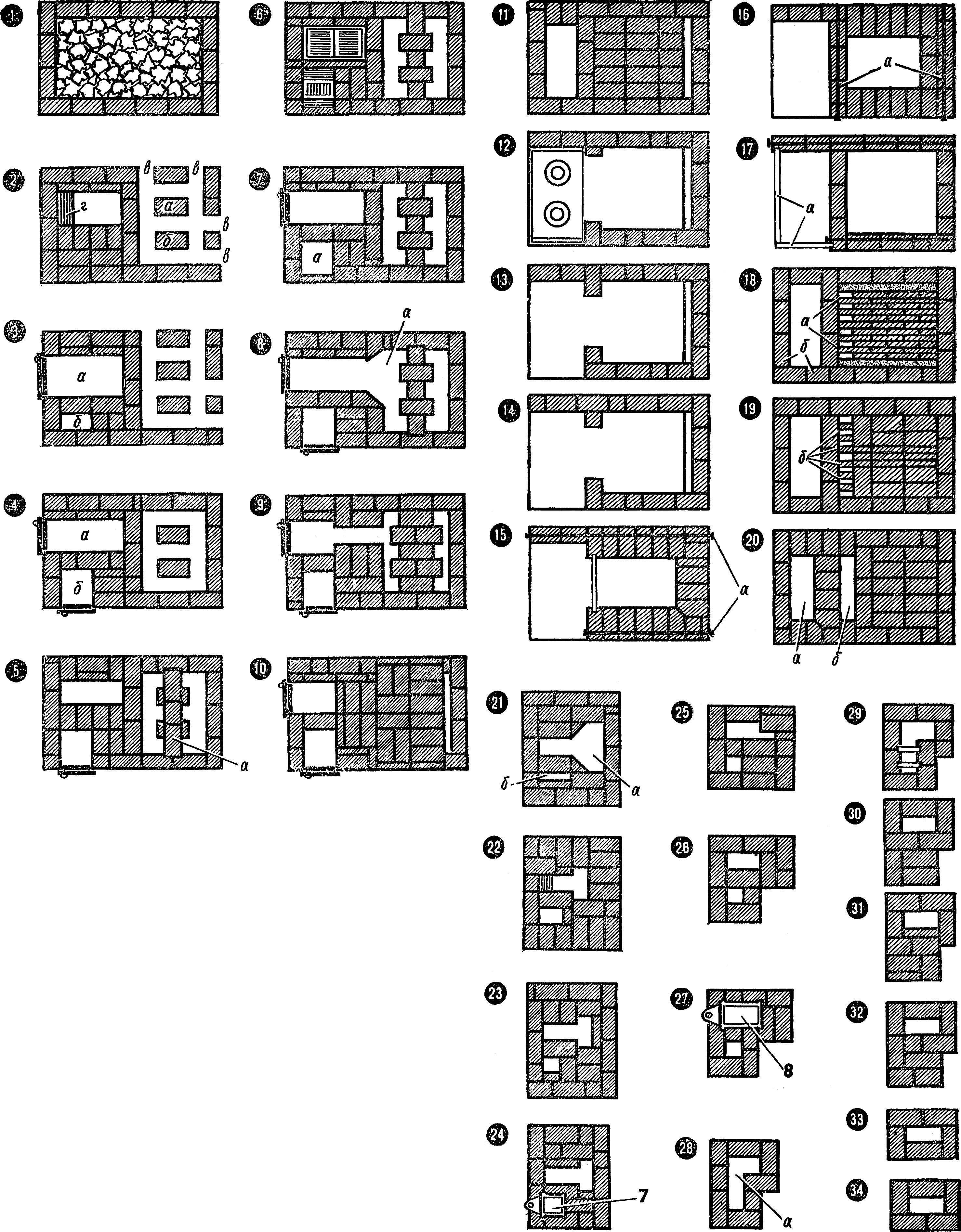 - du 6 au 9, un foyer et une porte en dessous sont aménagés; si un four est supposé, la boîte est installée à proximité (sur la figure de droite);