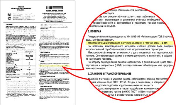 Les termes établis par le fabricant sont indiqués dans le passeport de l'appareil, parfois dans d'autres documents - l'indication des termes dans les documents joints au compteur est obligatoire. Néanmoins, les périodes très différentes de celles recommandées sont assez rares et sont principalement caractéristiques des appareils importés.Tous ne sont pas approuvés pour une utilisation et inclus dans le registre de la norme d'État - prenez-le avec précaution afin de ne pas avoir à remplacer le compteur par un modèle approuvé.