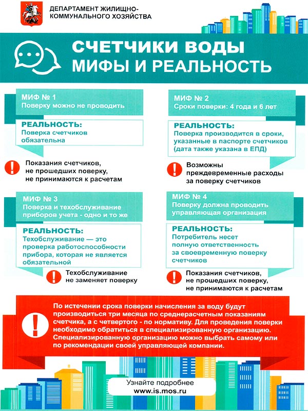 Inconvénients : les appareils de mesure destinés à être livrés aux centres de normalisation et de métrologie devront être démontés indépendamment (avec la participation des entreprises concernées et de la société de gestion), et la période de vérification elle-même peut prendre 3-4 semaines ou plus, pendant lesquelles la consommation d'eau sera calculé en fonction de la consommation mensuelle moyenne.