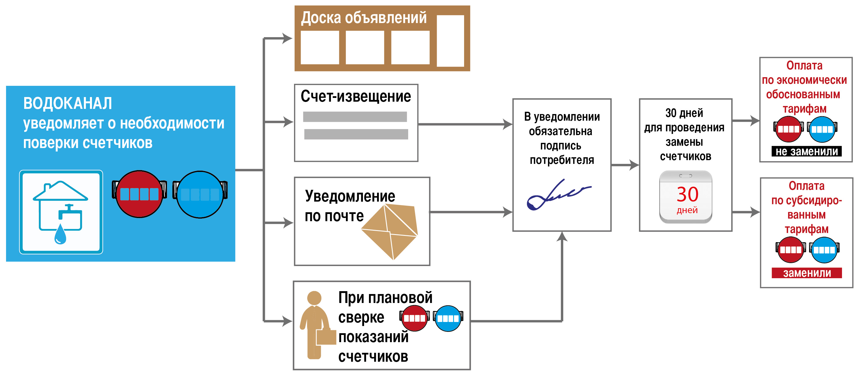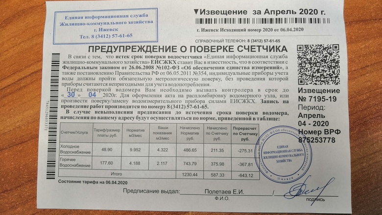 Au moment de la procédure, le propriétaire doit présenter des papiers pour un appartement ou un contrat de location, des chèques pour le paiement des services publics. Dans le cas contraire, la vérification ou le remplacement des appareils de mesure seront refusés.