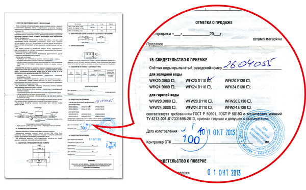 Après avoir remplacé le compteur d'eau, le propriétaire disposera d'un document de mise en service de l'entrepreneur et d'un passeport technique pour l'appareil.