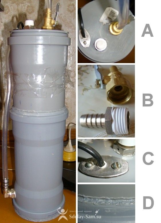 Chez soi, chacun est capable de construire une installation composée de trois conteneurs connectés en série. Un tel filtre ne fonctionne que sous une certaine pression du système de plomberie.