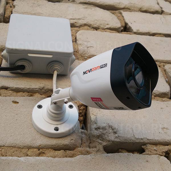 Ensuite, montez la caméra elle-même sur le mur. Faites passer les fils de celui-ci dans la boîte de jonction, où vous venez d'installer les connecteurs BNC-F.