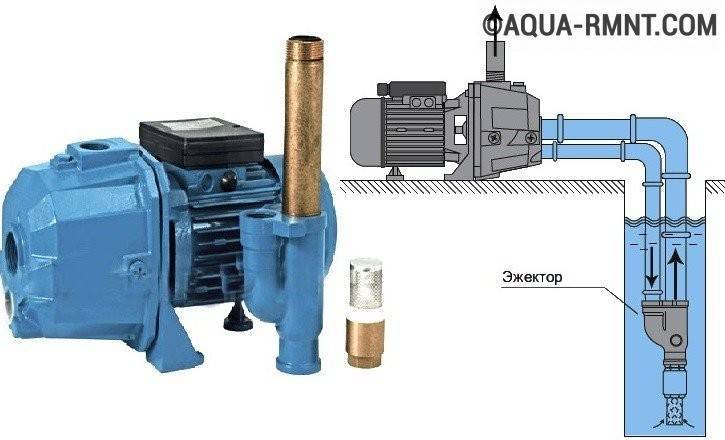 Les fabricants produisent des pompes auto-amorçantes avec un éjecteur intégré ou à distance. Dans ce type d'équipement de pompage, l'aspiration et la montée du liquide se produisent en raison de son refoulement. Pendant le fonctionnement, les installations d'éjecteurs font trop de bruit, c'est pourquoi une pièce spéciale est sélectionnée pour leur placement sur le site, située à une distance suffisante du bâtiment résidentiel. Le principal avantage des pompes auto-amorçantes avec éjecteur est leur capacité à soulever l'eau d'une grande profondeur, en moyenne environ 10 mètres.Dans ce cas, un tuyau d'alimentation est descendu dans la source de prise d'eau et la pompe elle-même est installée à une certaine distance de celle-ci. Cette disposition vous permet de contrôler librement le fonctionnement de l'équipement, ce qui affecte la durée de son utilisation.