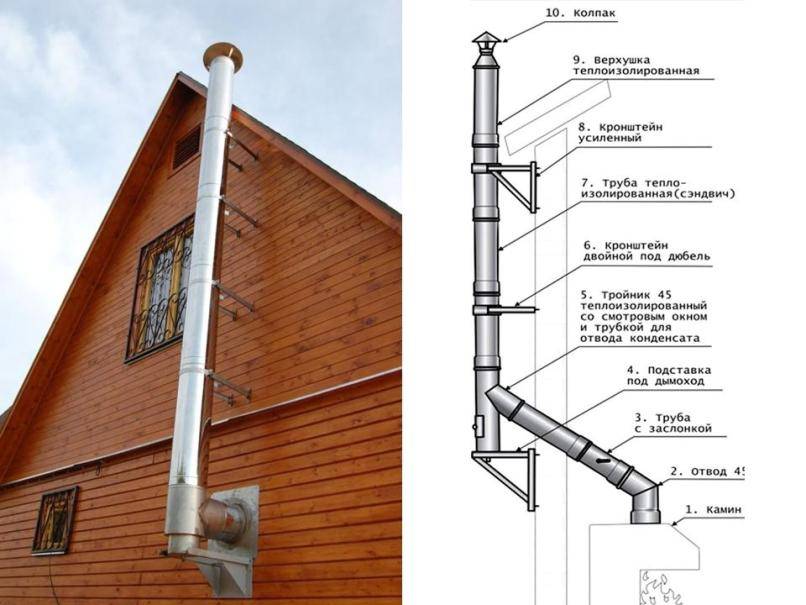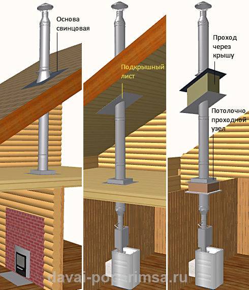 Noter! Il est conseillé d'installer les tuyaux internes de la structure le long du condensat afin qu'il ne pénètre pas dans les joints et ne fuie pas. Nous notons également que même avec deux couches, de telles cheminées nécessitent une bonne isolation des sections les plus résistantes au feu - nous parlons du toit, des poutres et du plafond