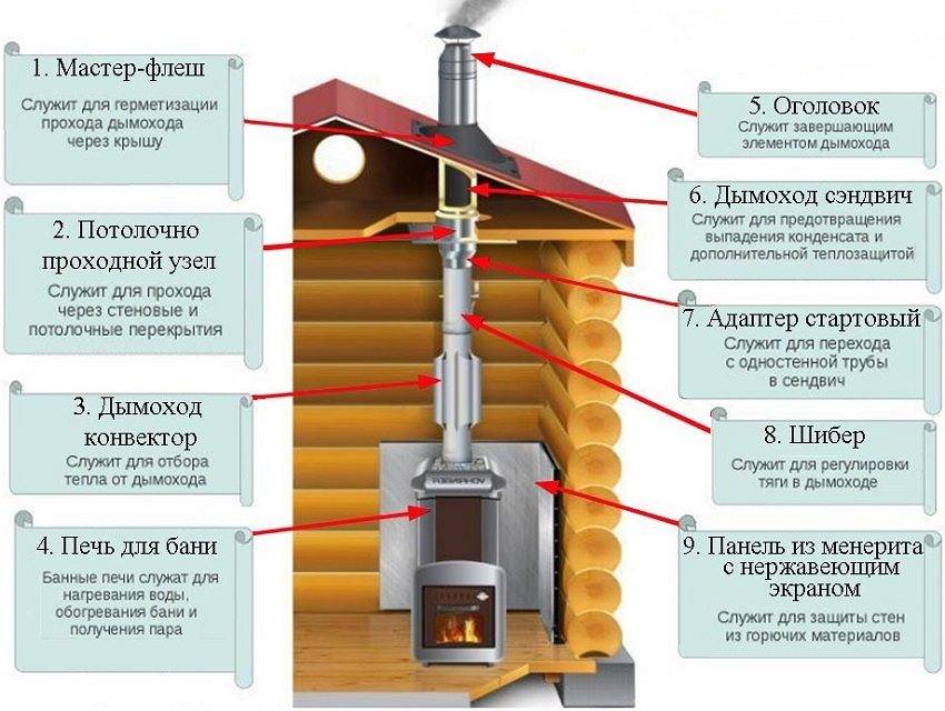 En plus des tuyaux sandwich, lors de l'installation d'une cheminée, les éléments suivants sont utilisés: