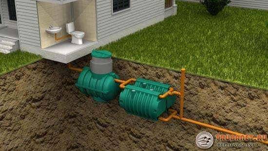 - Enlèvement de liquide par gravité dans un réservoir ou une fosse. C'est le principe de fonctionnement le plus simple du système, dans lequel le niveau d'eau dans le réservoir ou la fosse doit toujours être inférieur au point de décharge de la fosse septique. Un tel système peut être installé sans l'intervention de spécialistes.
