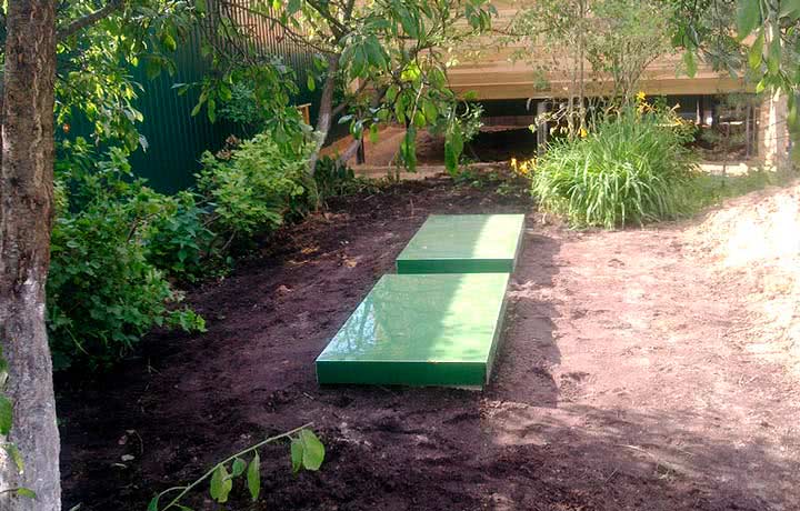 - grâce à la conception complètement étanche, l'installation peut être réalisée sous le niveau de la nappe phréatique, auquel cas elle doit être lestée à l'aide d'ancrages spéciaux à cet effet. En règle générale, toutes les fosses septiques en sont équipées;
