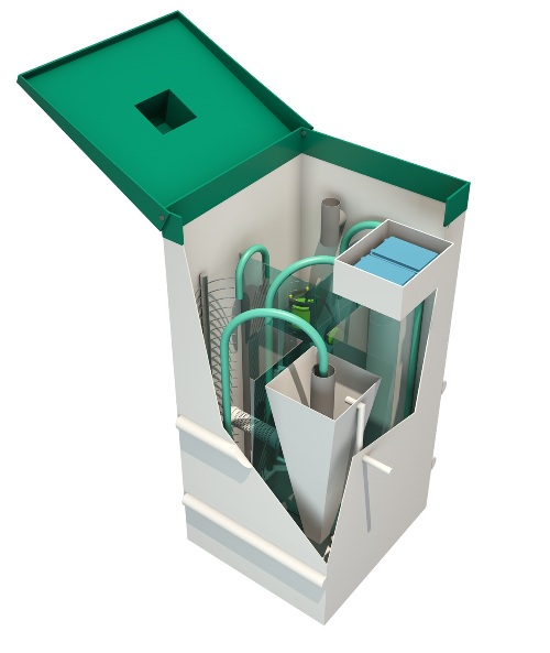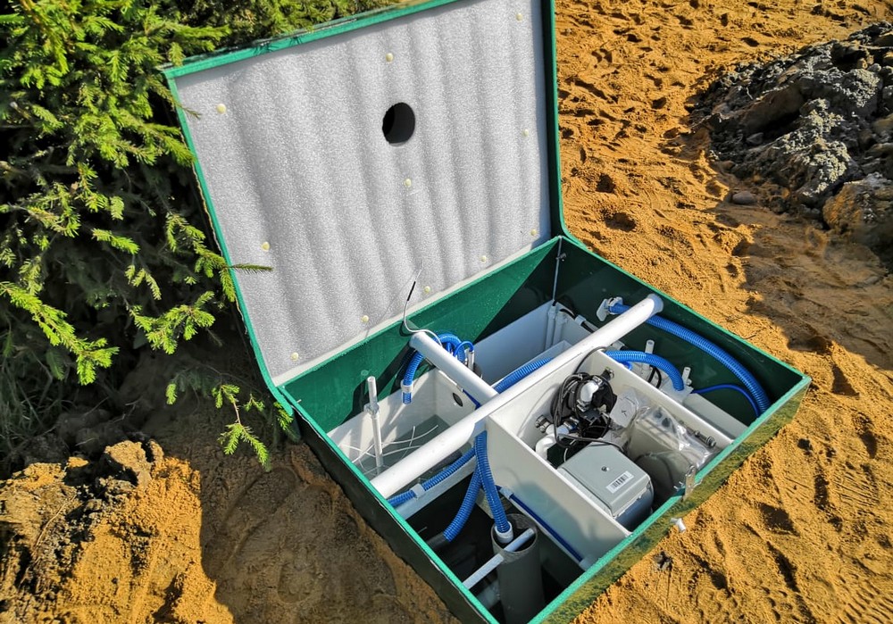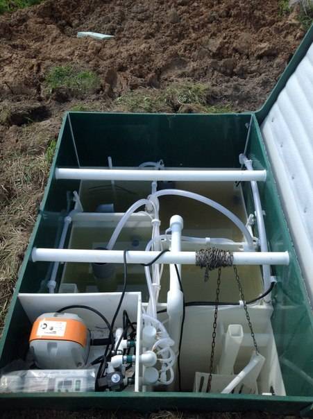 La station est en fibre de verre, se compose de deux ou trois chambres, où les flux d'eaux usées subissent progressivement un nettoyage en plusieurs étapes. Pour un fonctionnement efficace, il est préférable d'installer en plus des champs de filtration qui purifient l'eau à un niveau optimal avant qu'elle ne pénètre dans le sol. Le fonctionnement de l'appareil en général est le suivant :