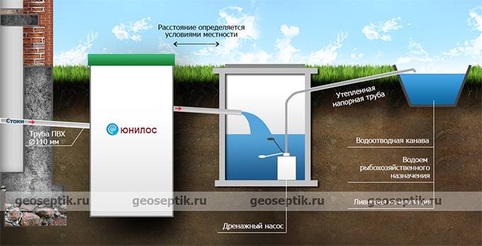 Vous pouvez installer un système d'égout autonome Astra Unilos 5, qui assure un drainage forcé. Sa configuration diffère de celle de base en raison de la présence d'une pompe pour le pompage des eaux usées. Dans ce cas, lors de l'installation, il faudra également équiper un puits de drainage, et les effluents liquides traités y seront rejetés.