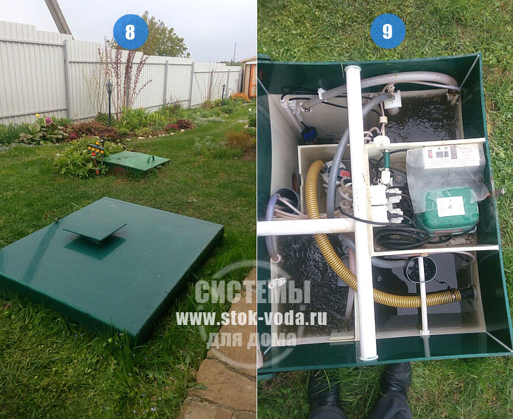 La productivité d'une telle installation par jour est de 800 litres et un débit de salve est de 180 litres.Les tuyaux doivent avoir la même profondeur - 60 cm.