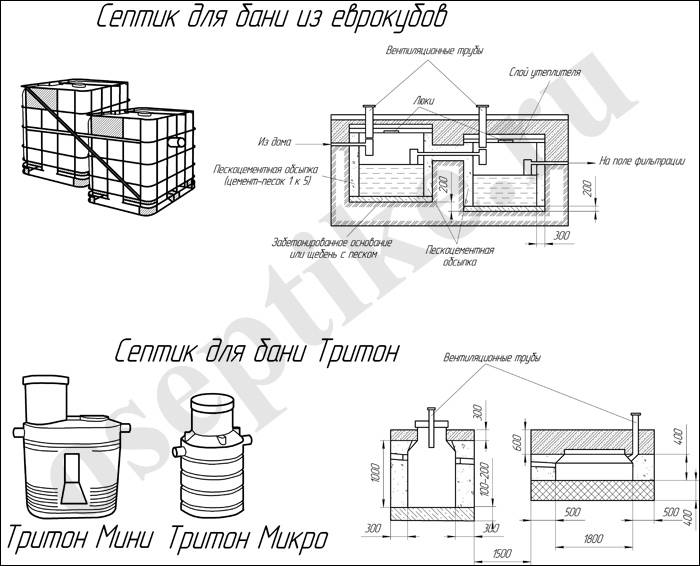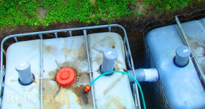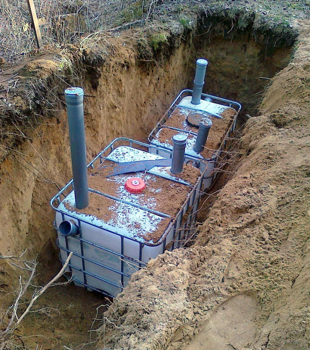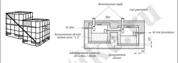 Les fosses septiques faites maison d'eurocubes n'ont pas de pompage et sont entretenues par les propriétaires eux-mêmes. Dans le même temps, des cultures bactériennes starter sont utilisées pour décomposer rapidement les déchets organiques.