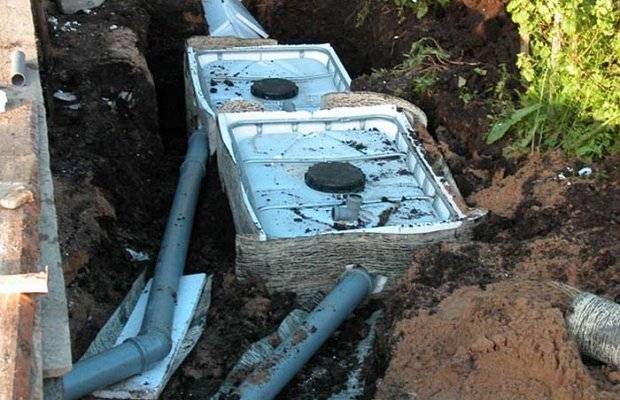 - La deuxième façon. Construction de champs qui effectuent une filtration souterraine et souterraine. Il s'agit d'une sorte de système d'irrigation qui laisse passer les eaux usées traitées par une fosse septique avant qu'elles ne pénètrent dans le sol. Pour le système, des tuyaux perforés en céramique ou en plastique sont utilisés, qui sont posés sur le filtrat. Des colonnes montantes de ventilation d'environ un demi-mètre de haut sont amenées aux extrémités des canaux.