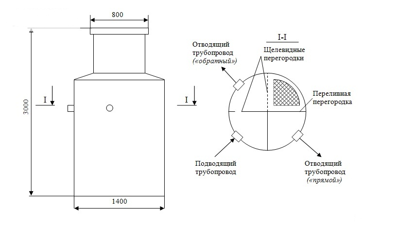 - La chambre de réception est utilisée pour collecter le liquide contaminé. Ici les drains s'installent. Sous l'influence des forces gravitationnelles, le liquide est divisé en plusieurs fractions, en fonction de la gravité spécifique ;