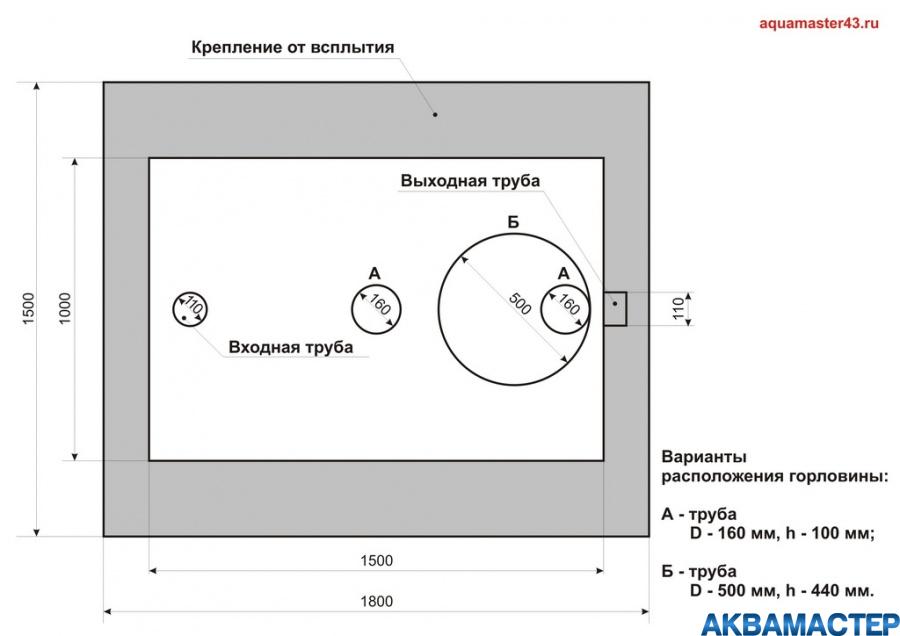 - la hauteur de la chambre de réception (du bas de la structure au col) - 1,5 m;