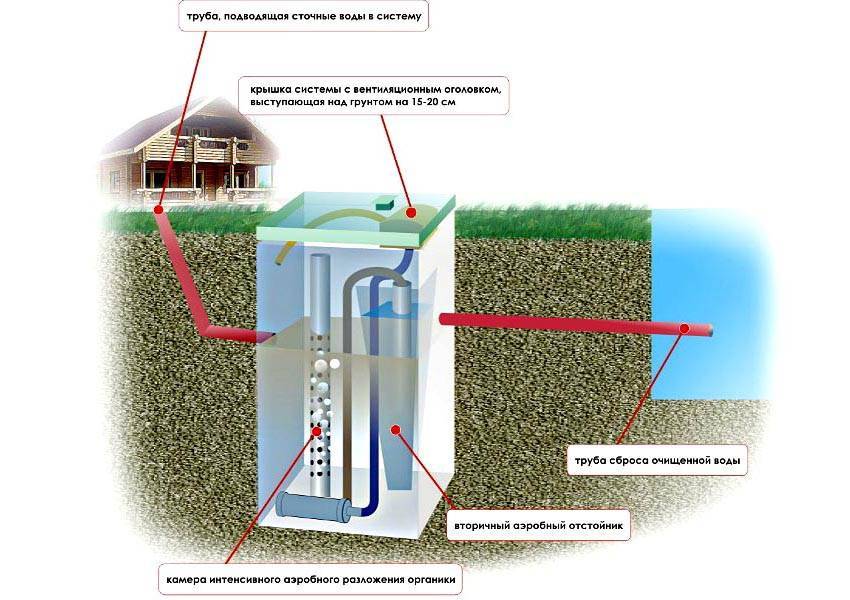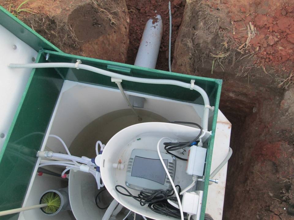 - Pour éviter la formation de condensat, le conduit d'air qui mène du compresseur à la station d'épuration doit être placé dans la même tranchée que la conduite d'alimentation. En même temps, faites une pente en direction de la fosse septique.