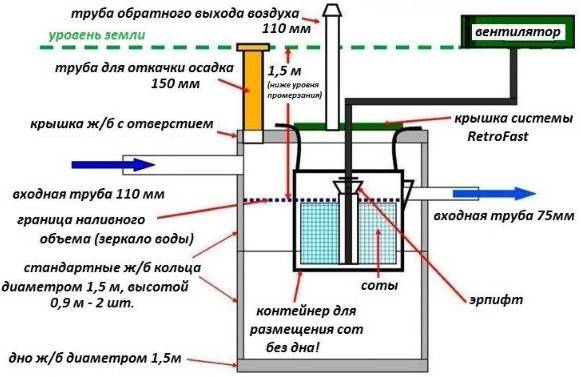 Le schéma de la fosse septique "Cedar" vous permet de considérer sa conception simple