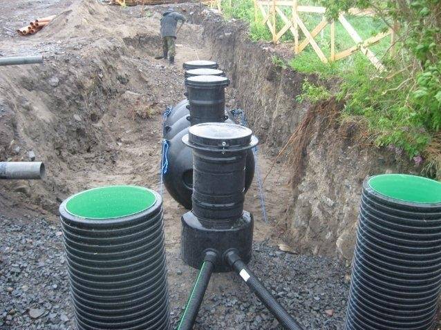 - La conduite d'alimentation en eaux usées est mieux assemblée à partir de tuyaux en polymère d'un diamètre de 100 mm et posée avec une pente de 20 mm par mètre. Dans le système de traitement des eaux usées, lors de la mise en marche du système de conduites d'alimentation, il est nécessaire de prévoir un puits (d'un diamètre de 315 mm ou plus avec un plateau pour les tuyaux de raccordement).