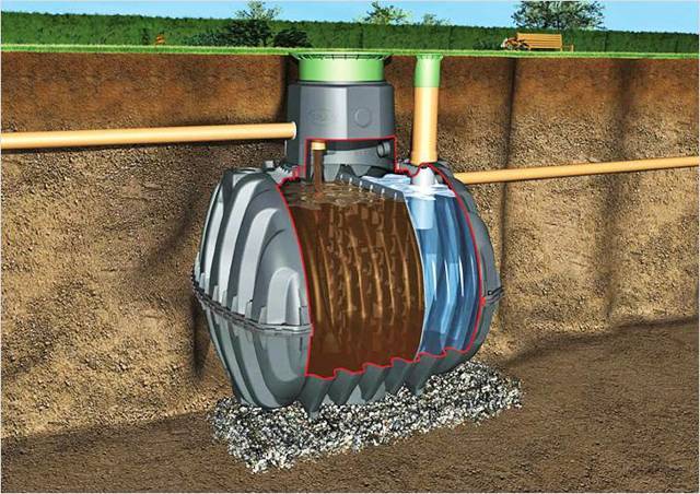 - Fiabilité et simplicité de conception. Le conteneur lui-même est fait d'un matériau durable. De plus, la carrosserie est équipée de raidisseurs. Tout cela permet à la fosse septique de supporter facilement des charges mécaniques importantes. Il n'y a pas de mécanismes à l'intérieur, ce qui signifie qu'il n'y a rien à casser.