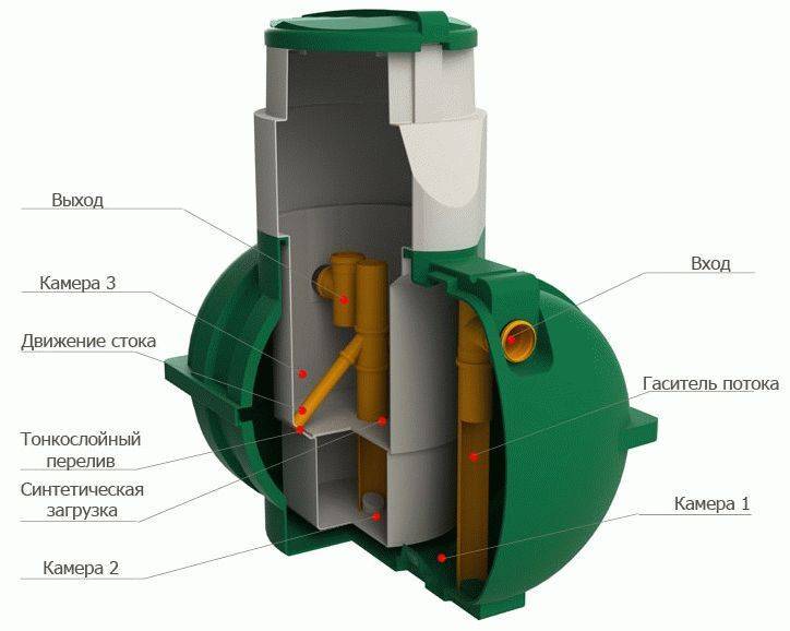 Initialement, tous les drains à travers les tuyaux d'égout pénètrent dans la première chambre. Cela arrive tout seul. Le tuyau d'arrivée par lequel les effluents entrent dans la fosse septique est équipé d'un extincteur. Il ne permet pas aux sédiments accumulés au fond de la chambre de se secouer.