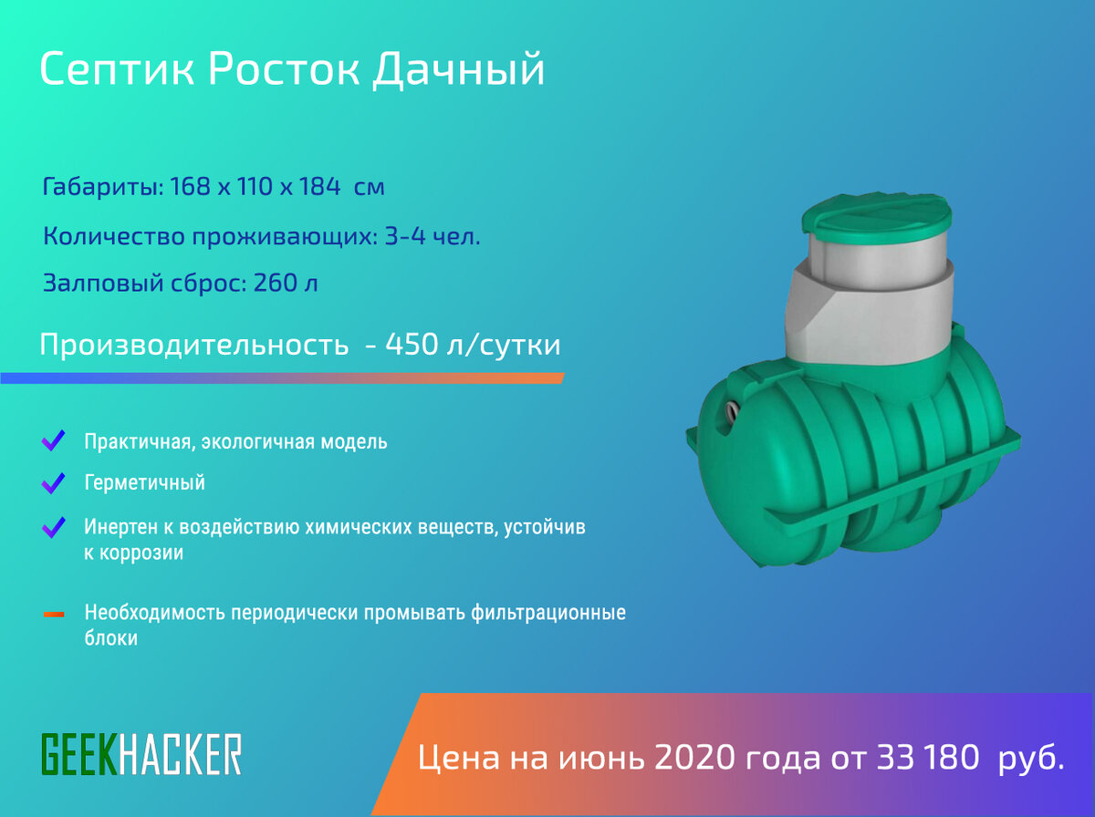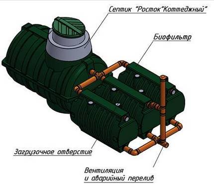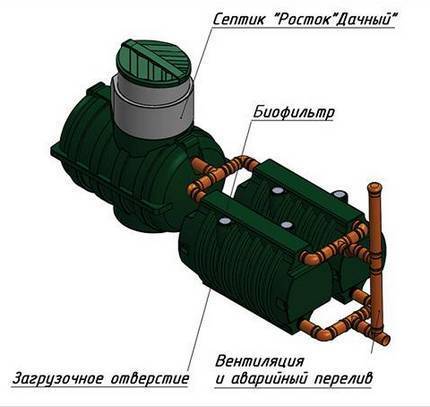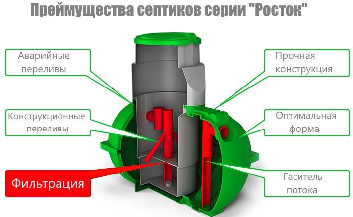 Avec la solution du dernier problème, l'apparition de fosses septiques en vente est liée. Ces appareils vous permettent de nettoyer les eaux usées domestiques et sont un élément clé des eaux usées locales. Rostok est l'un des modèles de fosses septiques les plus populaires.