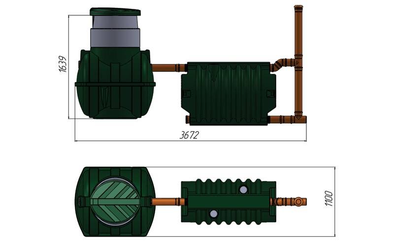 - Égout autonome "Rostok"-Dachny. Une telle station est conçue pour 1500 litres d'eaux usées. L'installation produit contrairement à la mini station jusqu'à 400 litres par jour d'eau purifiée à partir des eaux usées domestiques. L'installation de type "Campagne" peut être utilisée là où 3-4 personnes vivent en permanence. Une différence importante par rapport au mini système de la fosse septique Dachny est sa forme allongée, qui vous permet d'économiser sur la profondeur de la fosse, sans approcher les eaux souterraines, et en même temps simplifie le nettoyage de la fosse septique au moment du pompage les boues.