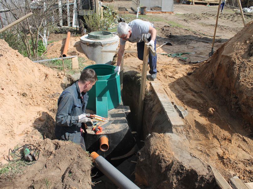 - Tout d'abord, il est nécessaire de creuser une fosse pour une station d'épuration, des tranchées d'entrée et de sortie pour les canalisations, ainsi que pour un gicleur.