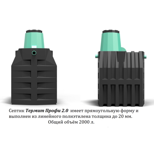 | Termite Profi 2.0 | 3-4 | 1595x1155x2005 millimètres | 2000 litres | 800 l/jour | 29900 roubles |