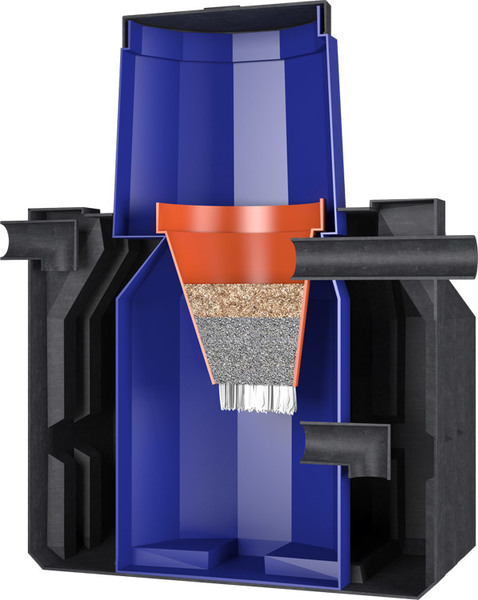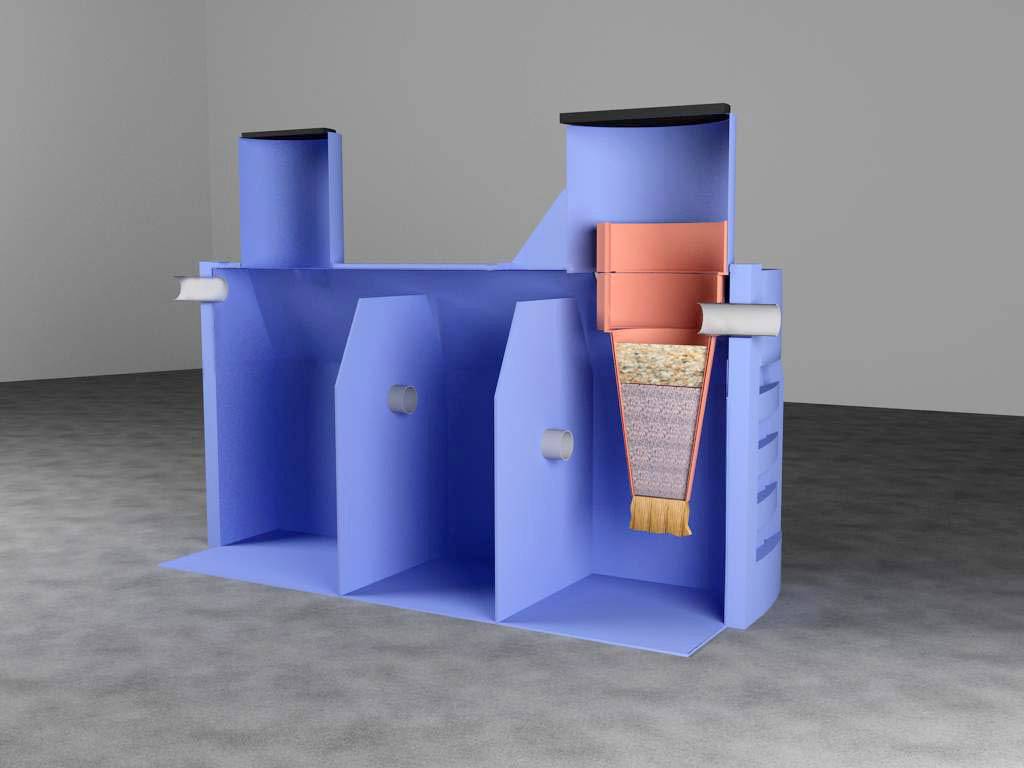 - Lorsque le niveau de débordement est atteint, ils passent au compartiment suivant. L'emplacement du trop-plein empêche les gros contaminants de s'écouler plus loin. Ils restent dans la première cellule.