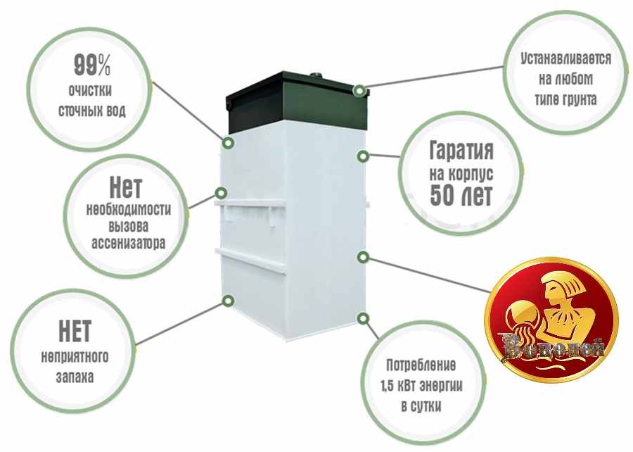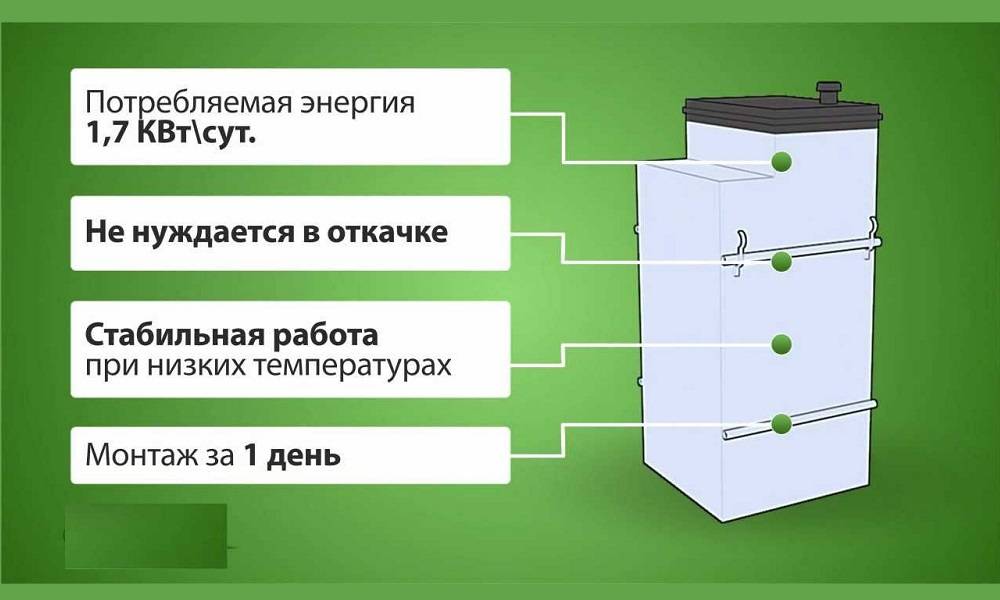 Le fonctionnement des fosses septiques Topol nécessite un minimum d'électricité, alors qu'elles sont faciles à installer et ne gèlent pas en hiver