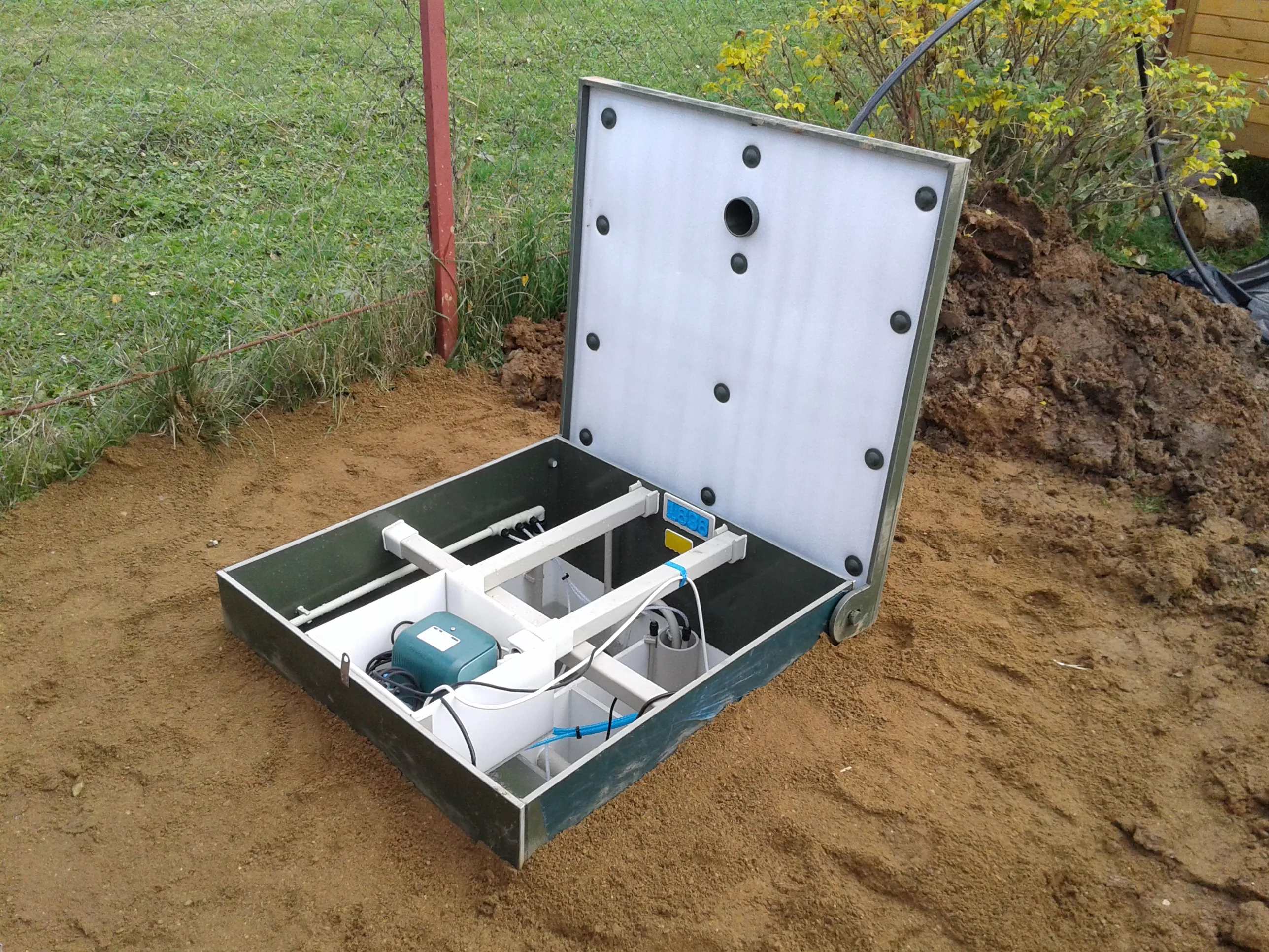 Le matériau du corps dont est fait le système est du polypropylène avec des nervures de renforcement supplémentaires. La fosse septique fait un excellent travail de traitement des eaux usées : la preuve en est que l'eau purifiée peut être versée en toute sécurité directement dans le sol sans crainte de contamination. Cette fosse septique a besoin d'électricité pour faire fonctionner le compresseur, mais lorsqu'elle est éteinte, elle n'arrête pas de nettoyer.
