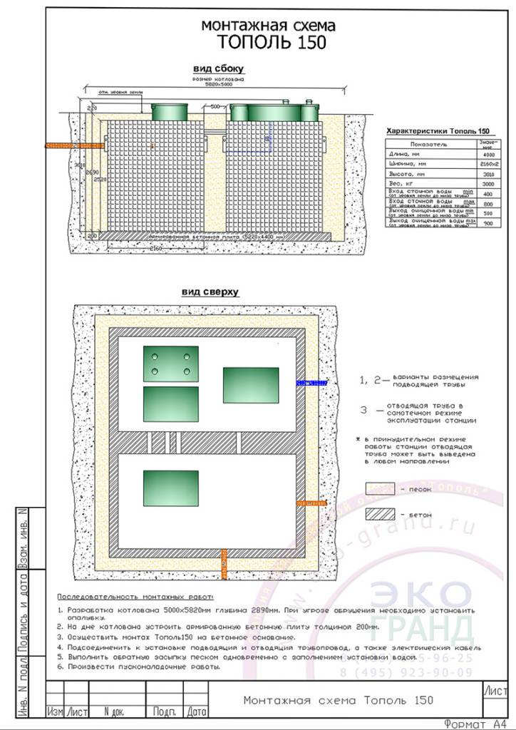 La station de traitement biologique élevé peut être installée dans des sols de tout type et catégorie. L'installation n'est pas affectée par le niveau de la nappe phréatique
