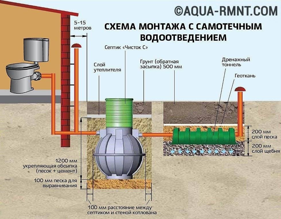 En ce qui concerne les inconvénients, le système nettoie les eaux usées à seulement 65%, donc l'installation supplémentaire de filtres de post-traitement est nécessaire. Vous devrez installer un puits filtrant, un champ de filtration, un système de drainage ou un tunnel de drainage afin que les effluents soient détournés et qu'une clarification supplémentaire ait lieu à ce moment. Vous devrez également sélectionner les bonnes tailles de puits d'égout.