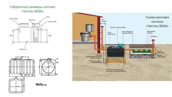 Le dernier modèle à chambre unique de la série est la fosse septique Chistok 3000, elle peut traiter 1000 litres d'eaux usées par jour et peut être recommandée pour une installation dans une maison de 5 à 6 personnes.
