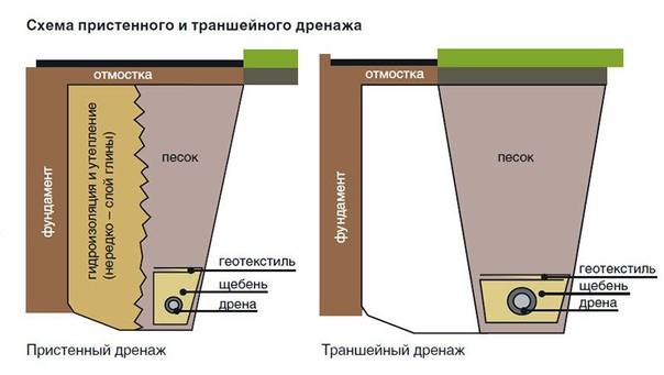 - linéaire (selon la coentreprise, la profondeur de drainage effective peut atteindre 4 à 5 m) le long du périmètre de la zone aveugle pour les bases de ruban;