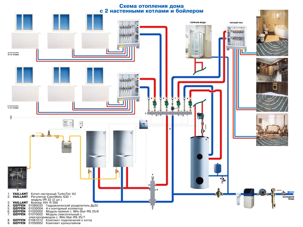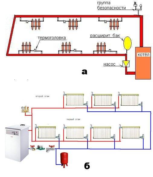 Schéma de chauffage d'une chaudière à gaz dans une maison à deux étages: aperçu et comparaison des meilleurs schémas de chauffage