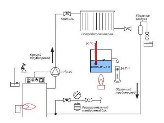 Ici, vous pouvez utiliser une chaudière de tout type, fonctionnant avec tout type de combustible. Le système de chauffage de l'eau est divisé en deux sous-groupes, selon le type de mouvement du liquide de refroidissement :
