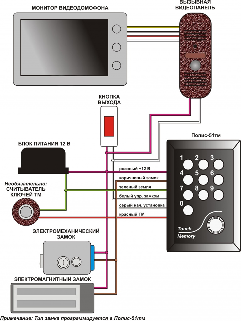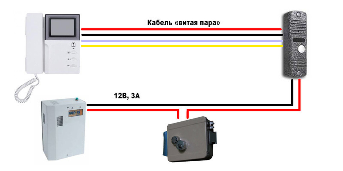• installation d'une alimentation séparée à laquelle le panneau d'appel est connecté, ainsi que d'une serrure électromagnétique ou électromécanique.