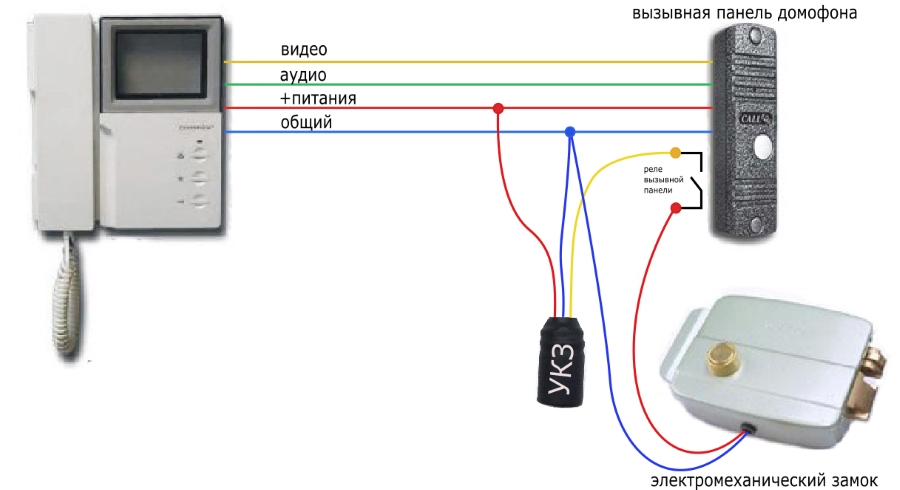 Le système d'interphone vidéo peut inclure une serrure électromécanique capable d'ouvrir la porte, dans la même mesure que la version classique sans panneau vidéo. Pour connecter le verrou, vous devez effectuer un certain nombre d'actions :