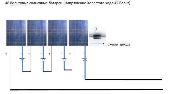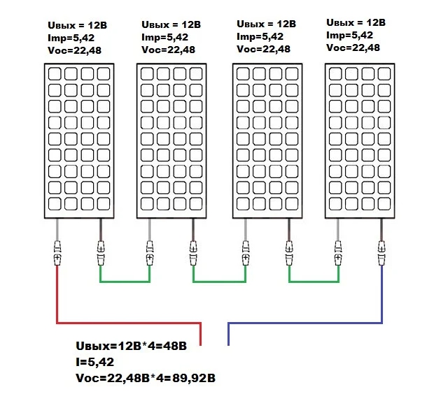 Séquentiel. Ici, vous devrez connecter le plus du premier panneau au moins du second. Ce processus est considéré comme assez simple, mais vous devez vous rappeler que vous pouvez obtenir 24 volts à la sortie.