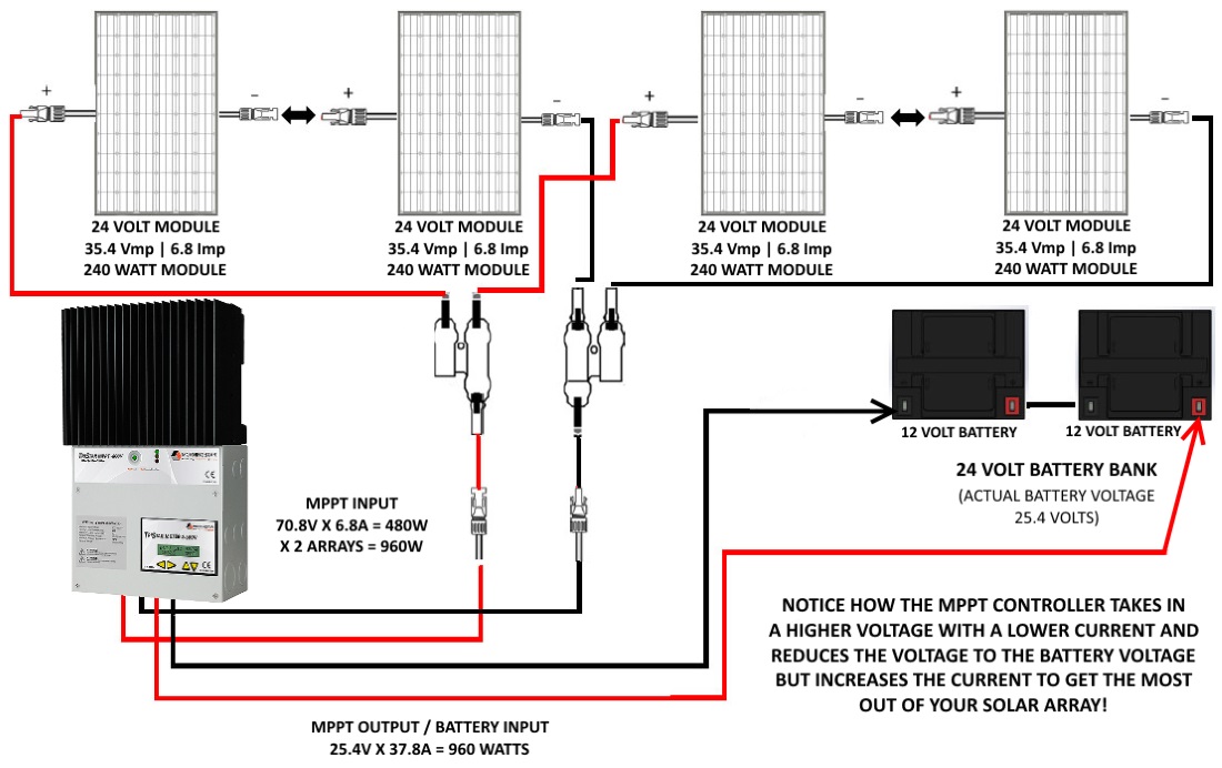 Si vous souhaitez connecter un panneau, vous n'aurez aucune question. Si vous devez connecter plusieurs panneaux solaires, vous devez utiliser l'un des schémas de connexion de panneaux solaires suivants :