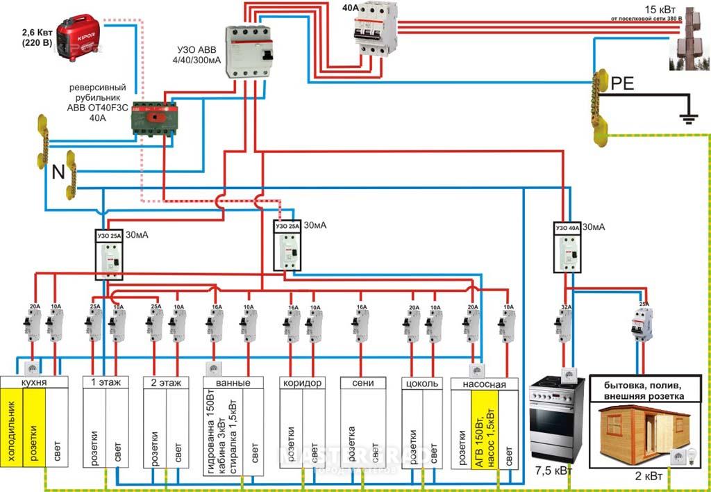Il existe des règles spéciales pour l'alimentation électrique d'une maison privée. Cela est dû à la présence de locaux techniques, d'éclairage public et d'autres facteurs. Il existe plusieurs composantes du réseau de logements individuels.