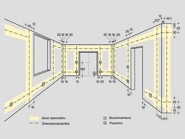 Installation du câblage de manière cachée, nous ne recommandons pas d'utiliser, car. cela prend plus de temps et il est peu probable qu'il améliore l'intérieur de la pièce. Une fois tous les éléments calculés, nous passons au processus principal.