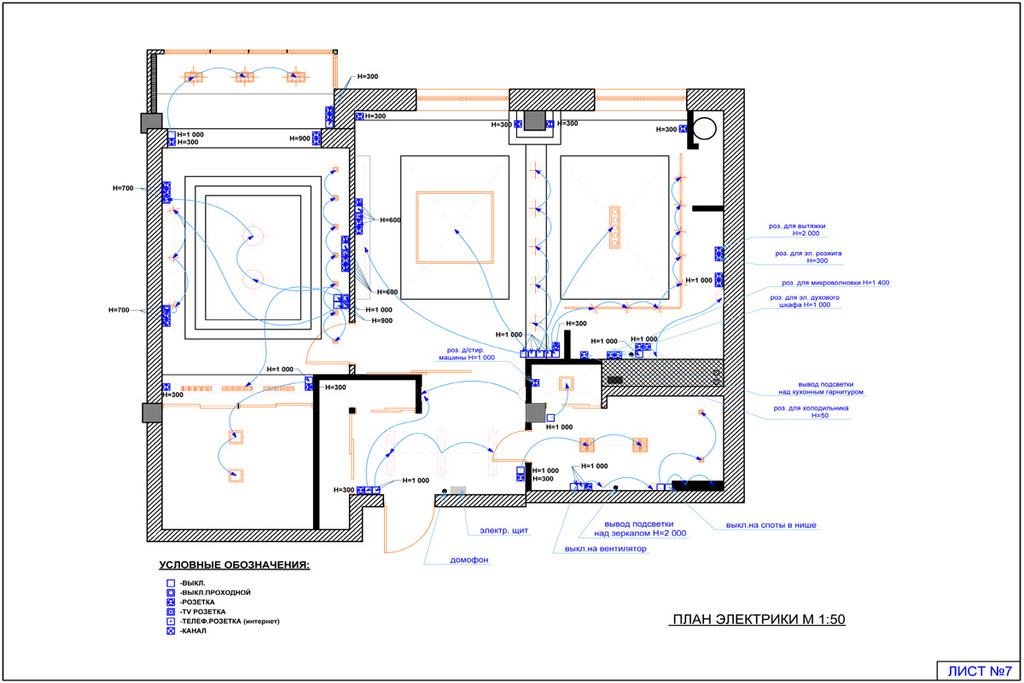 Lorsque vous effectuez des travaux avec un électricien, il est important de connaître la position de tous les éléments du système électrique de la maison et la disposition du câblage à l'intérieur des murs. Cela est nécessaire, ne serait-ce que parce que, dans le processus de réaménagement, de réparation, les communications importantes ne doivent pas être touchées. Il est également nécessaire s'il y a l'un ou l'autre dysfonctionnement du réseau.Lors du câblage des électriciens, la charge sur le réseau de la maison doit également être prise en compte et un câble avec la section requise doit être utilisé.