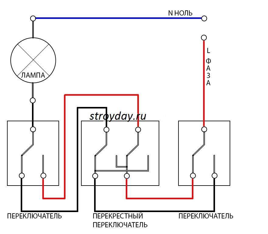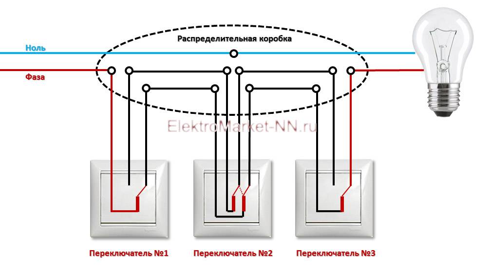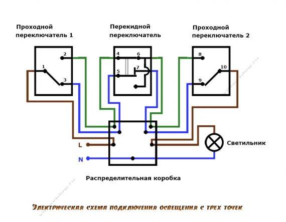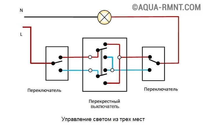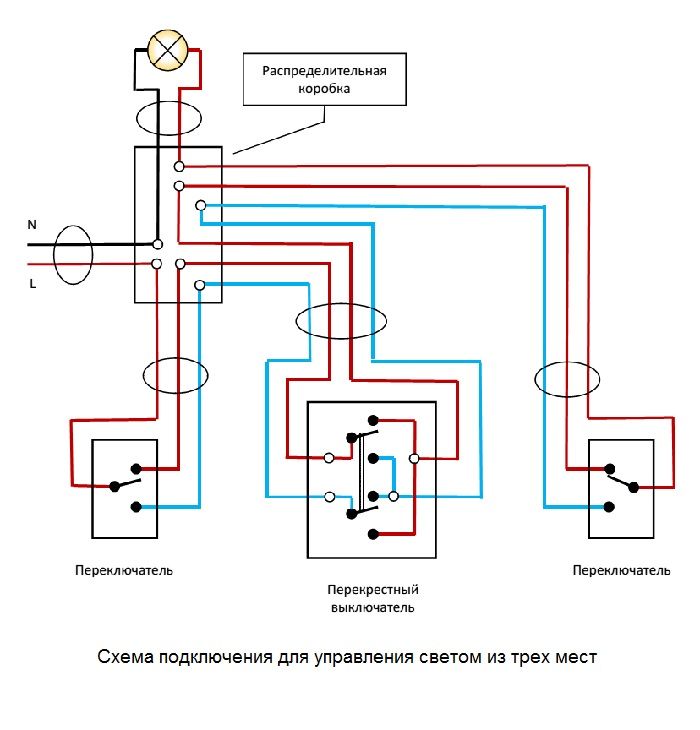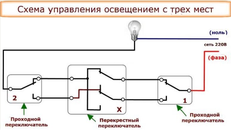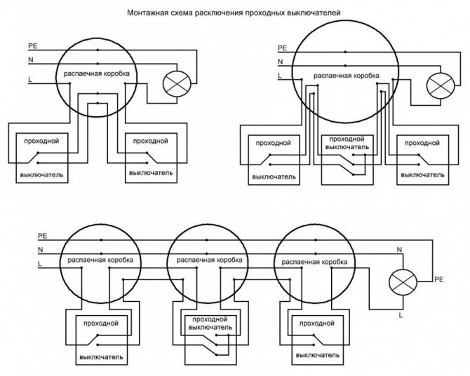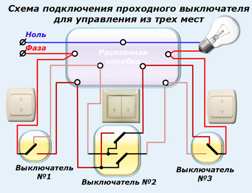 Schéma de connexion d'un interrupteur de passage à partir de 3 endroits: une vidéo détaillée du travail