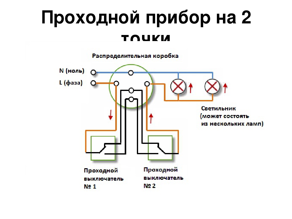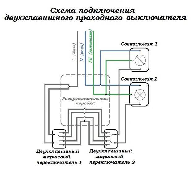 Le schéma classique de connexion d'un interrupteur à trois voies nécessite l'utilisation de deux interrupteurs traversants et d'une croix. L'apparence des appareils de duplication est presque la même que celle d'un appareil à clé unique. Dans n'importe quelle position des touches d'un tel interrupteur, la connexion du circuit électrique n'est pas interrompue, seuls les contacts sont commutés. Le mécanisme de commutation des interrupteurs de passage est situé au centre des contacts.